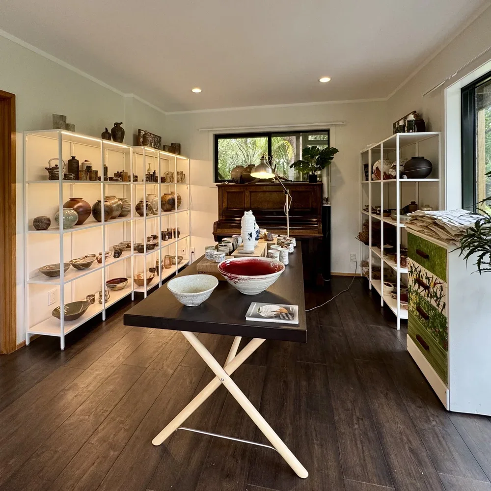 The aesthetics of Ronald’s pots respond to his local environment, landscapes, and colours – and having grown up in the Netherlands, lived in Israel, then Canada, and now Aotearoa New Zealand, local has taken on a rather expansive meaning. His current work focusses on the surfaces created by wood firing with salt and soda, though he also likes too explore other means of firing, such as electric and naked Raku.